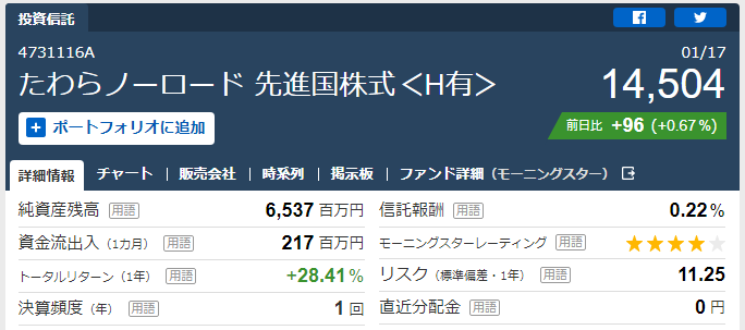投資信託データ たわらノーロード 先進国株式<H有> - Yahoo!ファイナンス